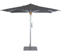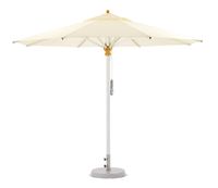 Pole and struts are manufactured from high-grade aluminum and given a light grey anodized finish, while the parasol hubs are made from bonded hardwood. It is this combination which gives the ALU PARASOL its unbeatable stability and resistance to weathering. We supply the parasols with air vent and pulley, and as for our KLASSIKER range, we also offer them with flounces.