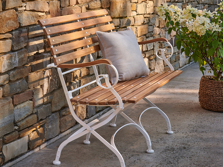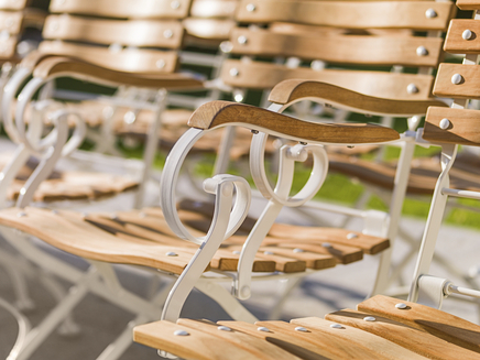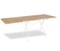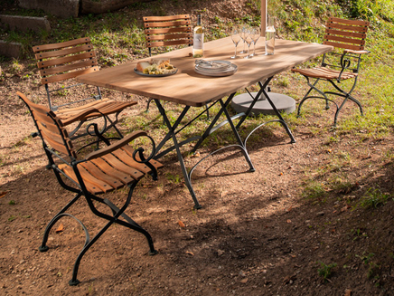 Just like the CLASSIC range, which has been one of our best-selling lines for many years. Its materials are of top quality, as we have continuously developed them over time. The frames are made from galvanized, powder-coated steel. The solid teak slats are bolted together with fully weatherproof stainless steel. We offer matching upholstery covered in fabrics from our extensive range. A wide selection of tables with solid teak tops and an attractively designed garden lounger mean you are really spoiled for choice.