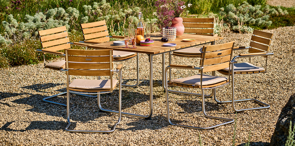 A further important element of our furniture is aluminium, which is alloyed and thus extremely resistant to acid and water. Aluminum is also highly pressure- and torsion-resistant, which means that it can be processed with particularly thin walls. This makes our furniture lightweight. All important individual parts are made from high-quality die-cast aluminum. In this way, there is no need for ugly welded joints – surfaces and edges are smooth. The subsequent state-of-the-art powder-coating process ensures that our alloyed aluminum elements really can stand up to any weather.