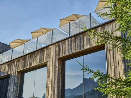 The KLASSIKER has a protective finish, and the canopy is water-repellent and moldresistant, which means it takes brief showers in its stride. And we have equipped it with an air vent as protection against gusts of wind. Almost all variations can be ordered in the mixed, breeze or stripe version or with flounces. The KLASSIKER has many extras to offer, for example a tilt mechanism – we can add lettering on request, and it goes without saying that each individual part is replaceable.